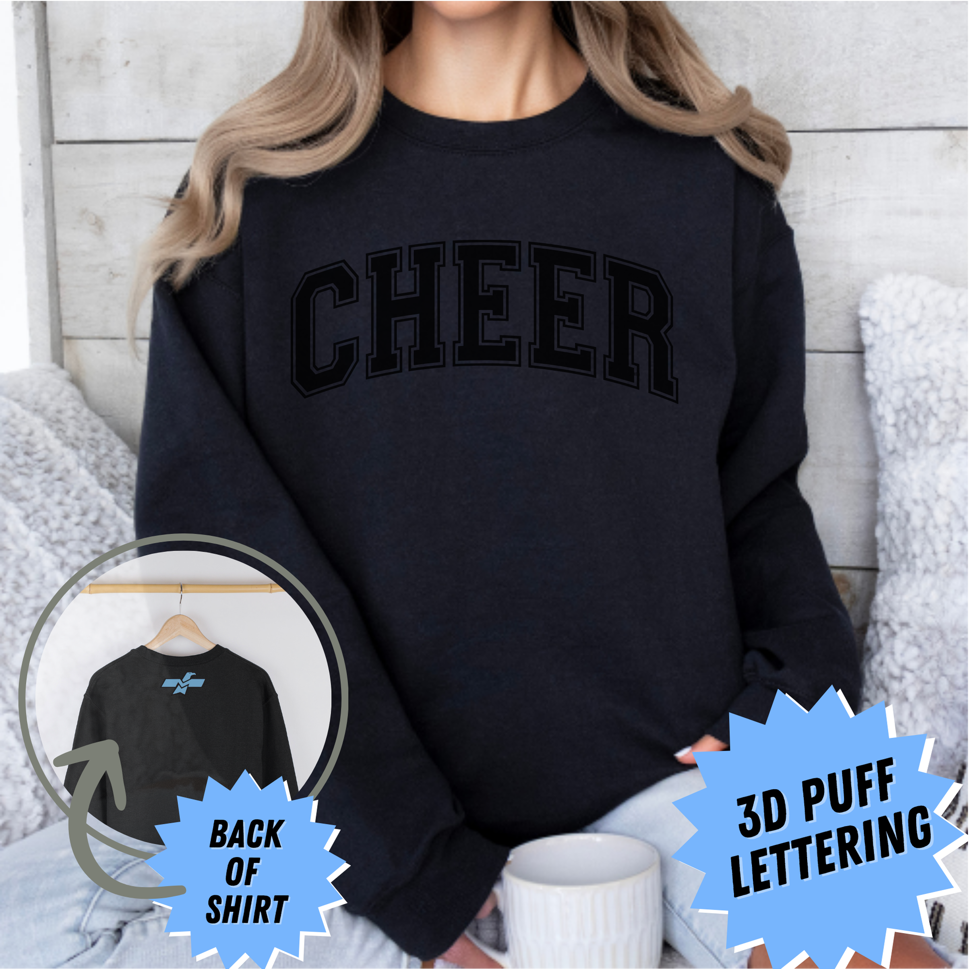 Elevate your sweatshirt style with our crewneck sweatshirt featuring a trendy puff print and small thunderbird on back!